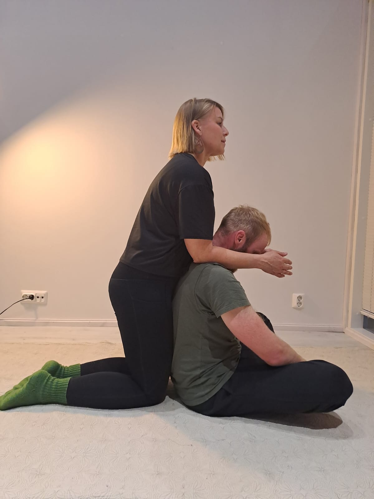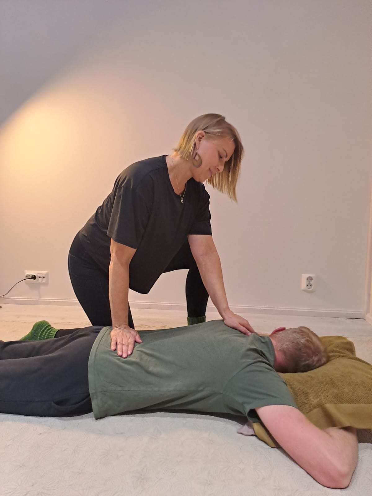Hoito tehdään vaatteiden läpi futon-patjalla. Asiakkaan kannattaa pukeutua joustavaan asuun.